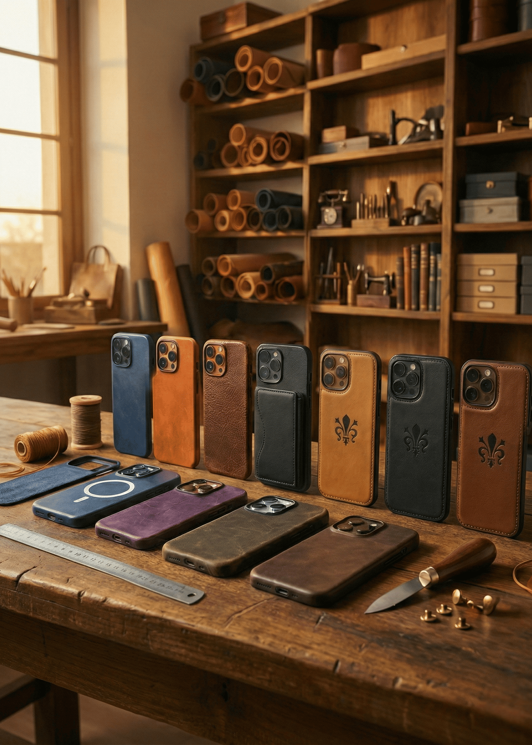 Hand-finished leather cases with a lived-in, Italian vintage feel.