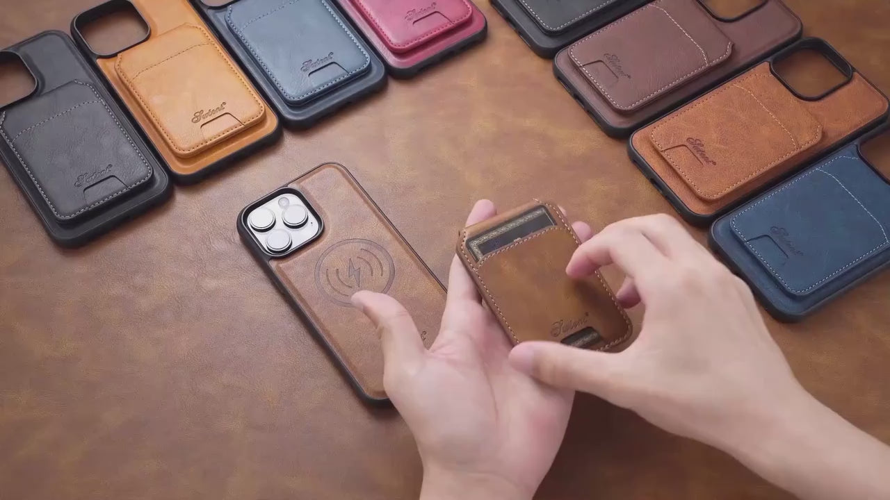Functions: Magnetic wallet attachment, card holder, stand support, wireless charging compatibility